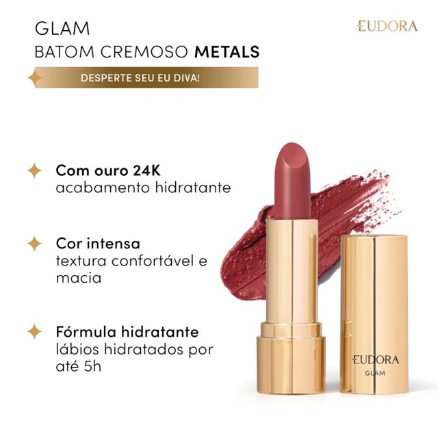 Uma combinação única de poder e sofisticação, para celebrar a sua beleza e empoderamento. Com uma fórmula exclusiva, o Batom Cremoso Metals Diva Suprema une a sofisticação do ouro 24K em uma colaboração com a arte da perfumaria, criando uma experiência única para seus lábios.