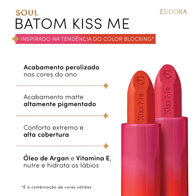 Em edição limitada, Kiss Me Matte vem em uma nova embalagem color blocking, com efeito degradê composto por cores modernas e vibrantes, dando um toque fashionista na sua make.